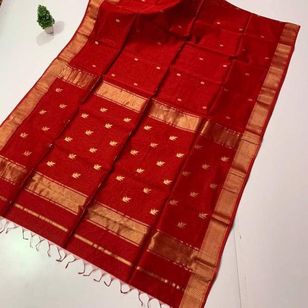 18 hours, 26 minutes agoJust ordered : Red Maheshwari Silk Cotton Leaf Design Saree From Bengal By Trimee