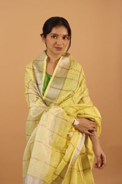 1 month agoProduct published : Yellow Tissue Linen Saree From Bhagalpur