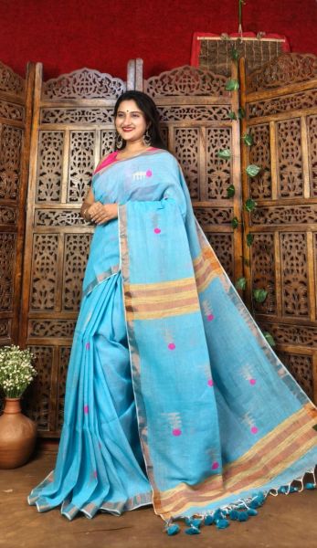 1 month, 2 weeks agoProduct published : Sky Blue Linen By Linen Pure Handloom Saree From Bengal