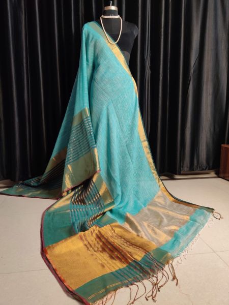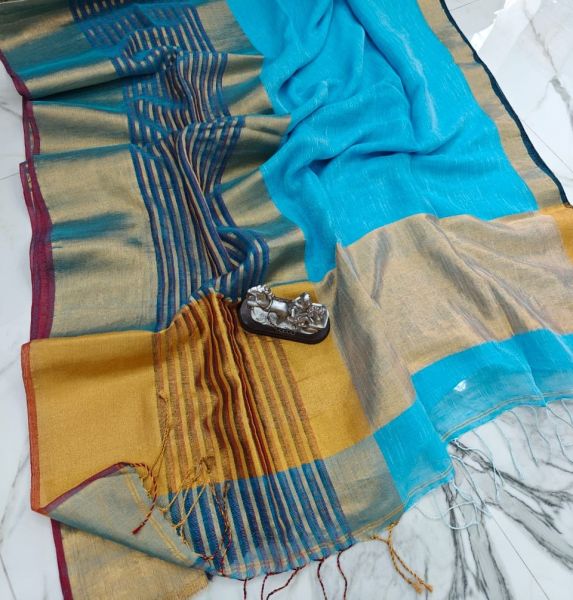 1 month, 3 weeks agoProduct published : Sky Blue Linen By Linen Pure Handloom Saree From Bengal