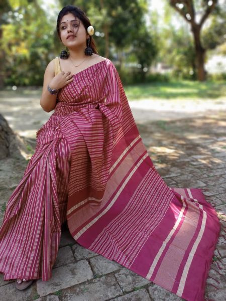1 month, 3 weeks agoProduct published : Dark Pink Pure Handloom Tissue Cotton Saree From Bengal