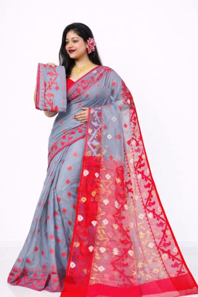 6 days, 14 hours agoProduct published : Gray Dhakai Jamdani Pure Handloom Cotton Saree From Bengal