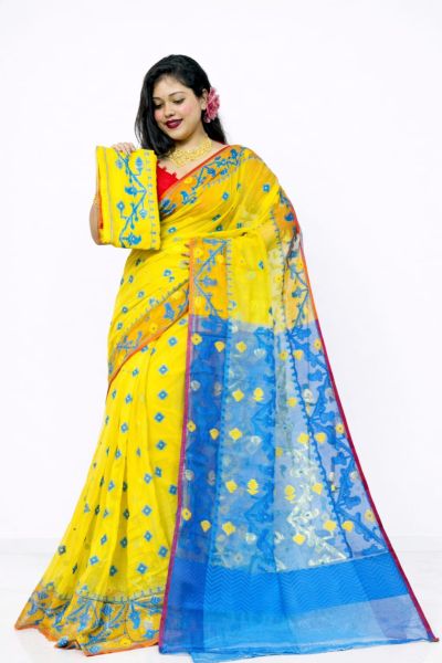 6 days, 16 hours agoProduct published : Yellow Blue Dhakai Jamdani Pure Handloom Cotton Saree From Bengal