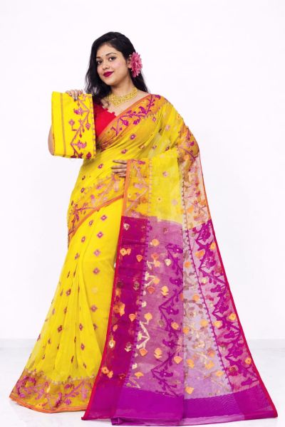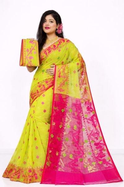 6 days, 16 hours agoProduct published : Yellow Pink Dhakai Jamdani Pure Handloom Cotton Saree From Bengal