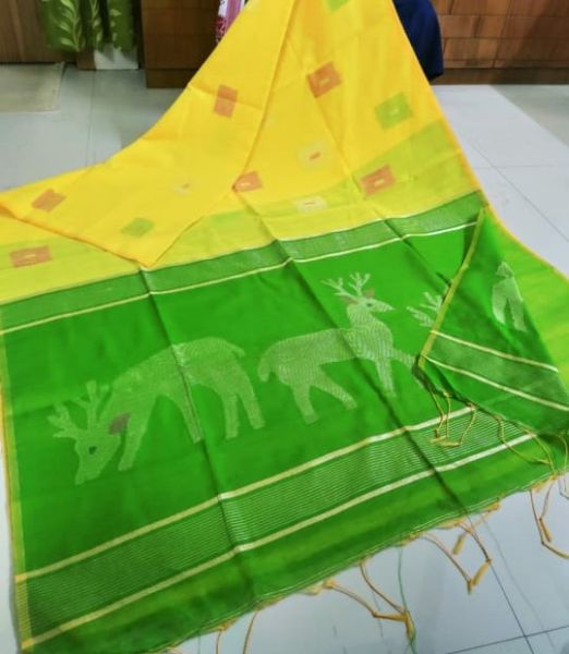 1 month, 3 weeks agoProduct published : Yellow Green Silk Cotton Pure Handloom Saree From Bengal