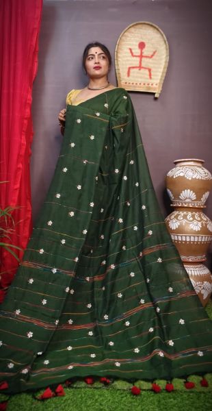 2 months agoProduct published : Bottle Green Flower Design Pure Handloom Saree From Bengal