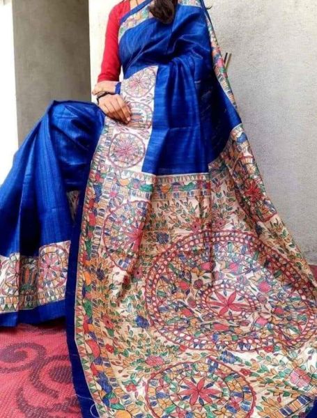 3 years, 5 months agoProduct published : Royal Blue Pure Tussar Ghicha Silk Madhubani Printed Saree From Bihar