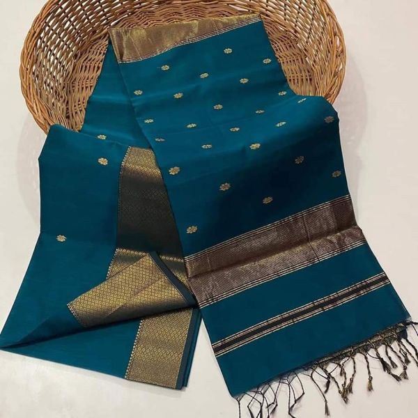 2 months agoProduct published : Blue Maheshwari Silk Cotton Mango Butta Design Saree From Bengal