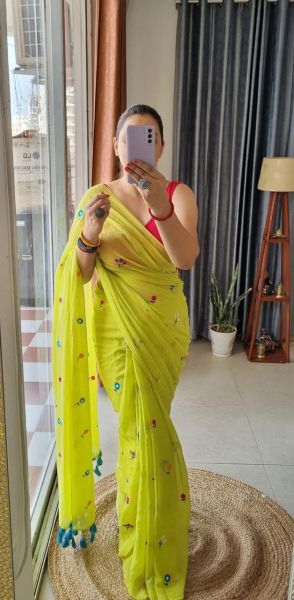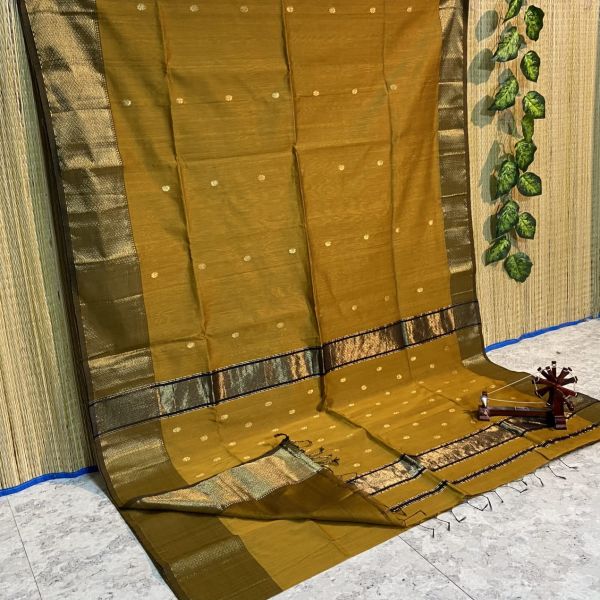 2 months agoProduct published : Mustard Maheshwari Silk Cotton Mango Butta Design Saree From Bengal