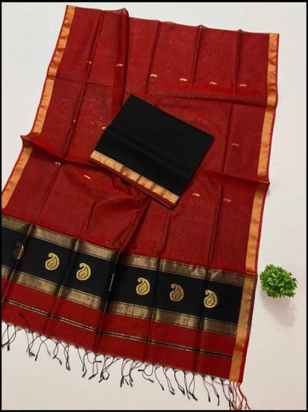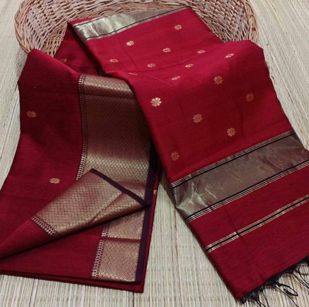 2 months agoProduct published : Red Maheshwari Silk Cotton Mango Butta Design Saree From Bengal
