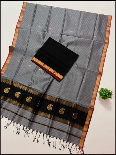 2 months agoProduct published : Gray Maheshwari Silk Cotton Mango Butta Design Saree From Bengal