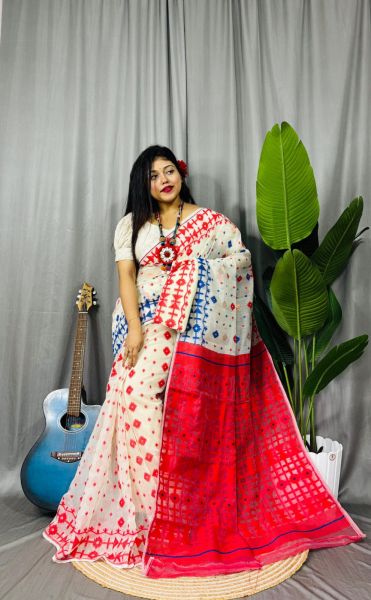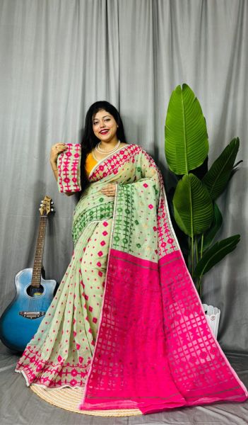 5 days, 4 hours agoProduct published : White Pink Pure Handloom Dhakai Jamdani Saree From Bengal