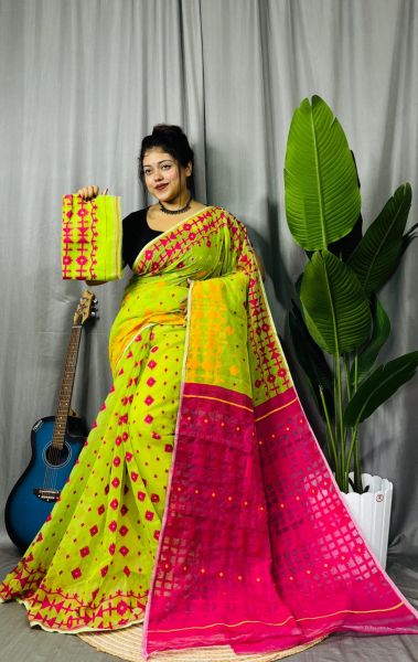 5 days, 4 hours agoProduct published : Yellow Light Blue Pure Handloom Dhakai Jamdani Saree From Bengal
