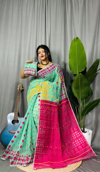 5 days, 5 hours agoProduct published : Sea Blue Pure Handloom Dhakai Jamdani Saree From Bengal