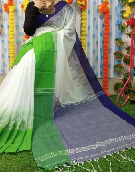 1 month, 4 weeks agoProduct published : White Green Blue Pure Handloom Cotton Saree From Bengal