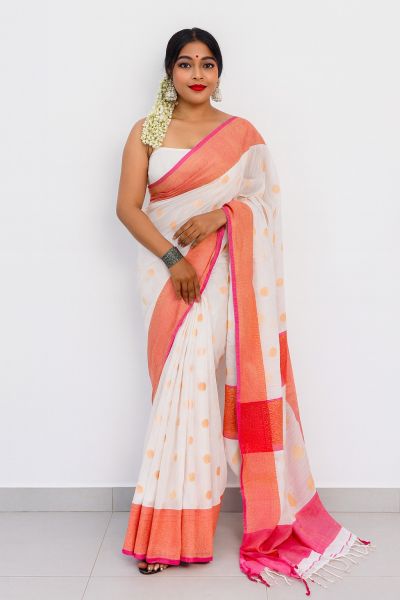 6 days, 22 hours agoProduct published : White Pink Pure Handloom Dhakai Jamdani Saree From Bengal